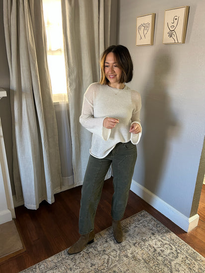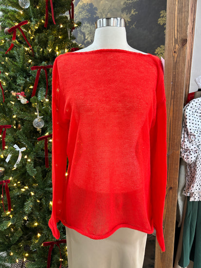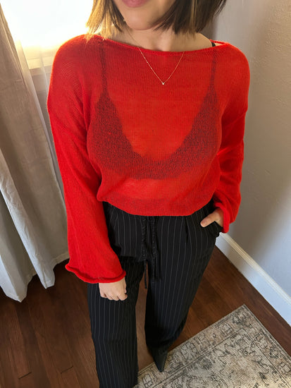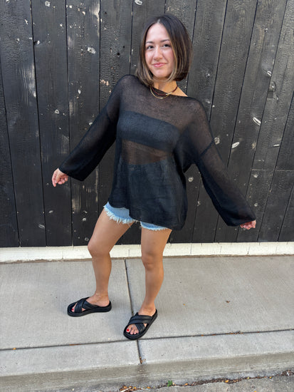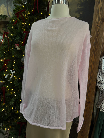 Stay stylish and comfortable with our Sheer Knit Long Sleeve Top! This top features a classic round neck design and a lightweight knit material, making it perfect for any season.
