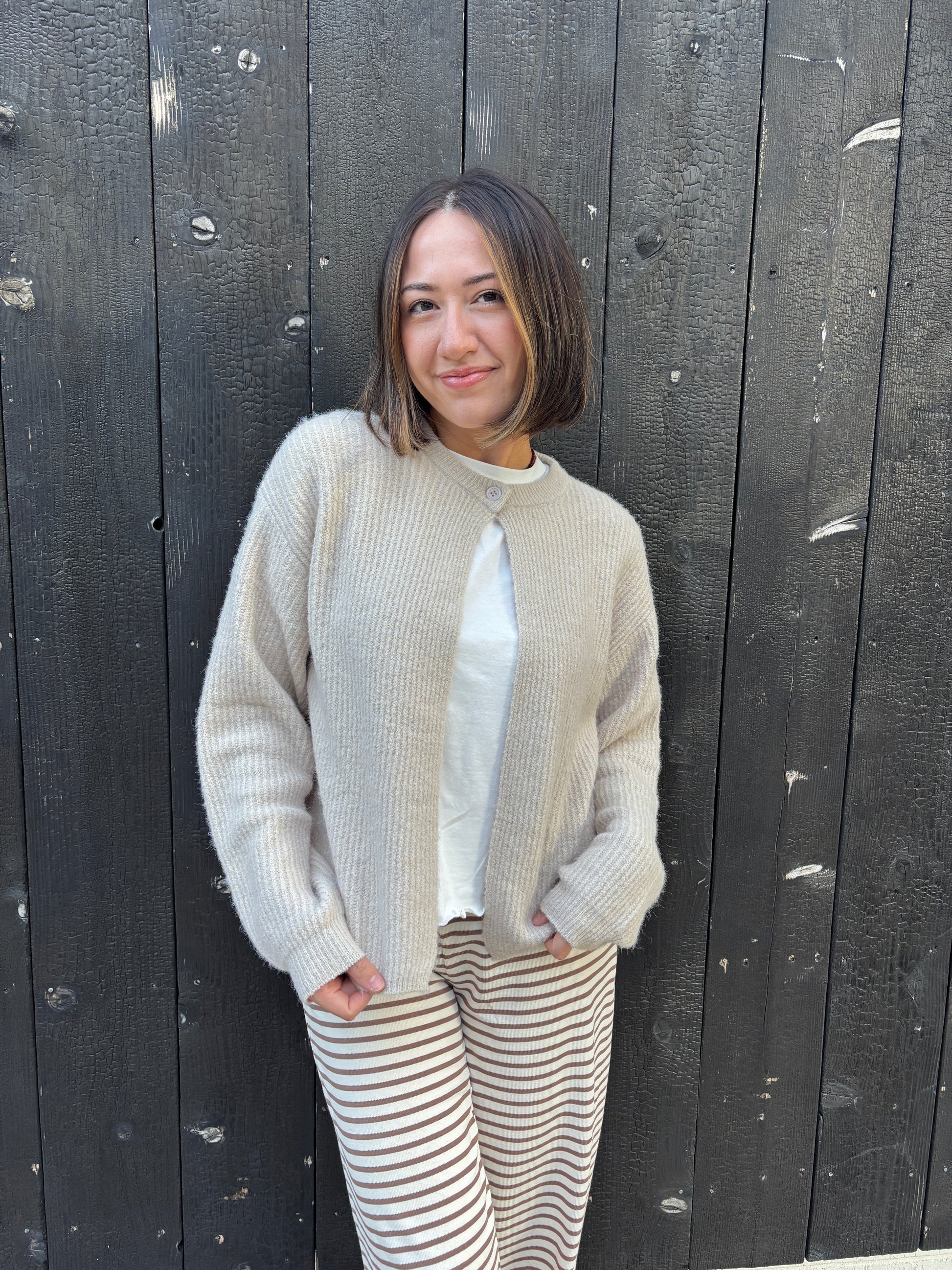 Wrap yourself in cozy charm with the James Cardigan! This loose-fit, long-sleeve favorite features a single button fastening that keeps things delightfully simple. Perfect for layering on breezy days or adding a touch of relaxed style to any outfit. Embrace comfort with a playful twist!