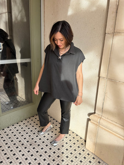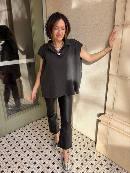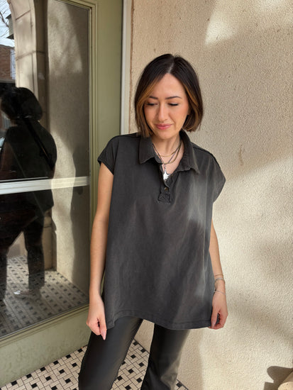 Meet the Palmer. The oversized polo that makes “I just threw this on” look very intentional. Soft washed fabric with that perfectly broken in feel, relaxed cap sleeves, and an easy drape that does not cling.